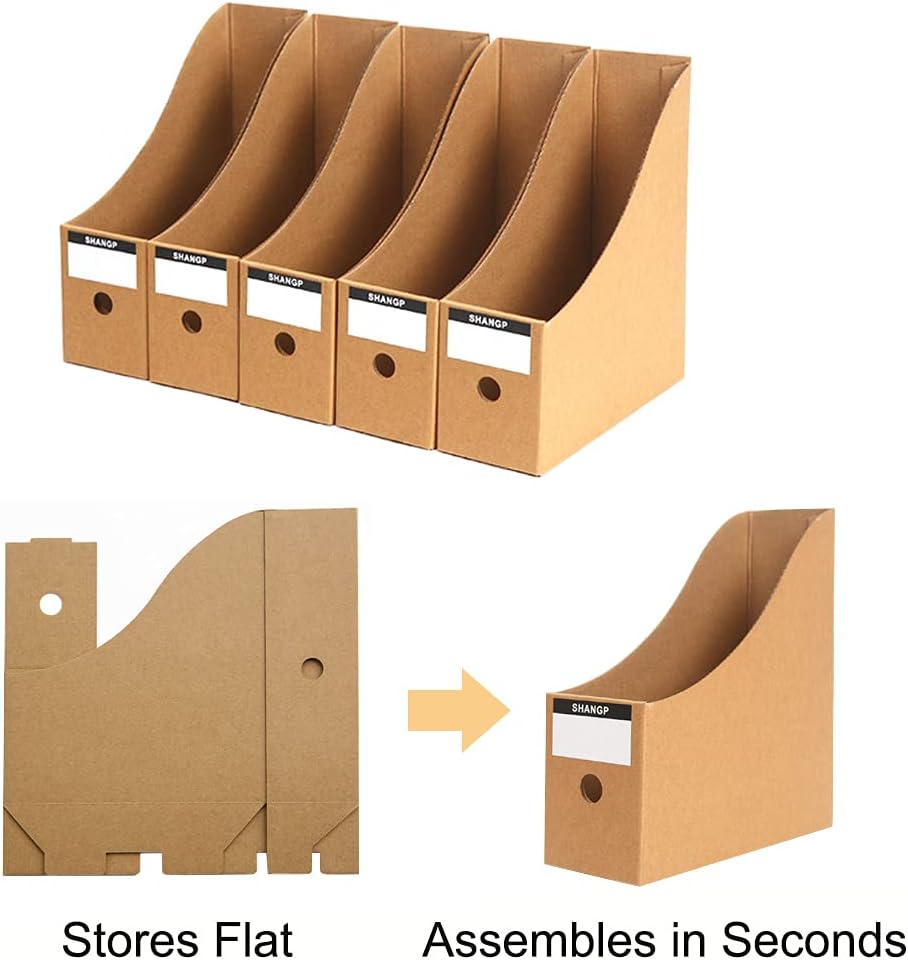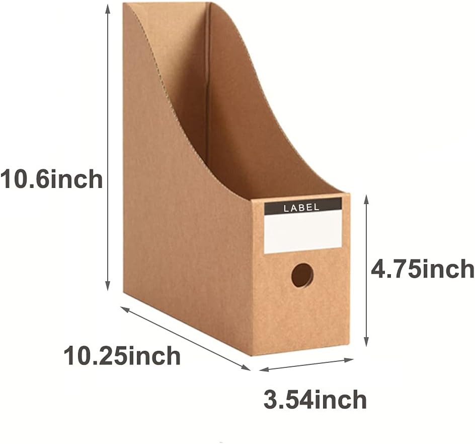 Stay organized and stylish with our Foldable Desk File Holder Organizer. This sturdy cardboard magazine storage box is perfect for keeping your documents and files in order at home, school, or the office. The sleek brown design adds a touch of elegance to any space, while the blank label stickers allow you to easily categorize and identify your files. The foldable design makes it easy to store when not in use, and the durable construction ensures that your files will stay secure. Get your hands on this versatile organizer today and say goodbye to cluttered desks and messy files!